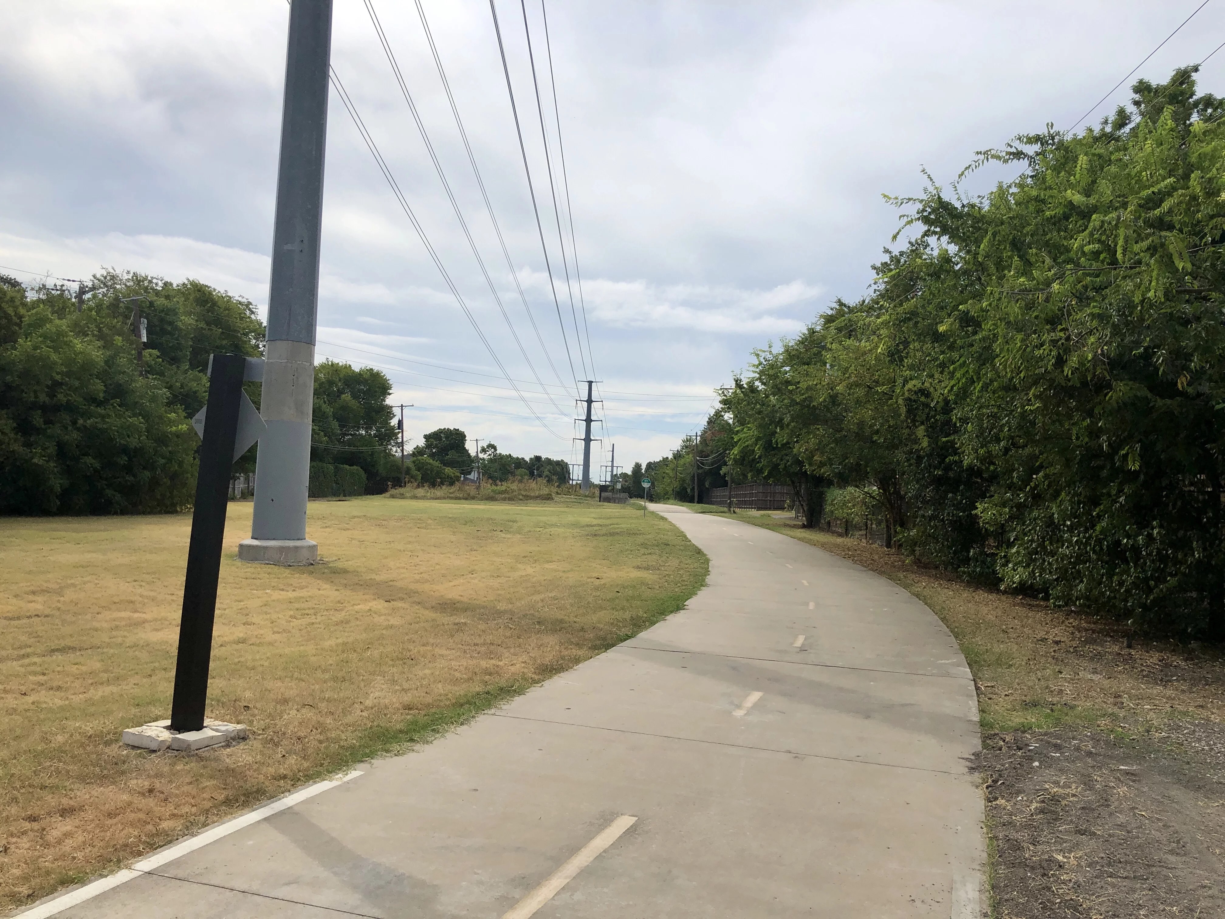 Crossing across North Dallas, this is one of the newer trails in the Dallas area. Built along an Oncor power easement, it’s a good use of the land, giving a much needed east / west path across the city. Originally the trail extended from 75 to Preston, but recent additions allow travel all the way to Monroe Drive, almost to Harry Hines Blvd. The view of the trail, as seen below, is primarily the concrete path as it winds along the easement under the power lines, with houses along either side. The trail does go through some beautiful neighborhoods, so you can easily explore the surrounding areas if you are curious, and return to the path to continue your journey.